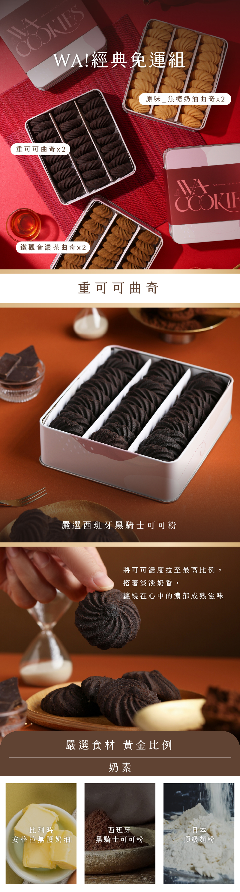 原味焦糖奶油曲奇、重可可曲奇、鐵觀音濃茶曲奇各2盒