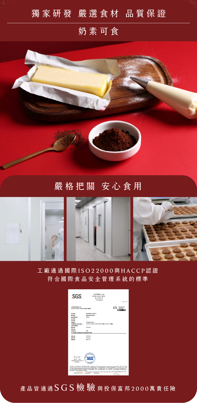 ※ 因運送過程如導致巧克力粉末沾黏到淋醬表面屬正常情形,請安心食用。 ※ 曲奇口感極致酥鬆,出貨前我們必確保餅乾的完整性,並特別提醒配合的貨運公司小心輕放。運送過程不免會發生外力碰撞,如有不周敬請見諒。若您非常介意產品收到時的完整性,請斟酌下單!因超商取貨運送過程不可控因素較高,較有可能造成餅乾碎裂之情形,送貨方式建議選擇「黑貓宅急便」宅配。 ※ 存放於陰涼乾燥處即可,開封後請盡快食用完畢。雲朵奶蓋為特製比例而成的微鹹起司巧克力奶蓋,如遇環境過熱較易融化。為獲得最佳風味和口感,夏季品嚐建議收到後先置於約20度的室溫一段時間後再享用。 |
